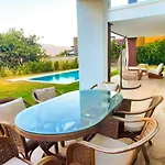 Private Villa With Pool And Garden med 4 sovrum, som ligger ungefär 25 minuters gångavstånd från Yalikavak Merkez Camii, erbjuder gästerna en terrass där de kan koppla av.